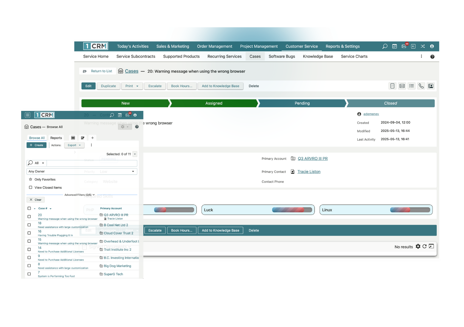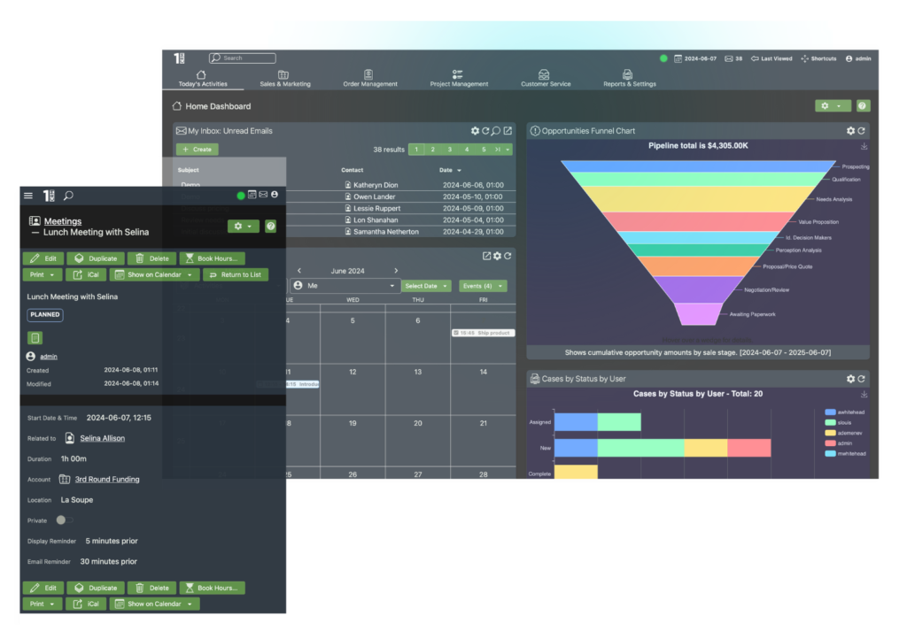 1CRM has dozens of built-in integrations, and our industry-leading open REST API has the flexibility to support any custom integrations you might need.