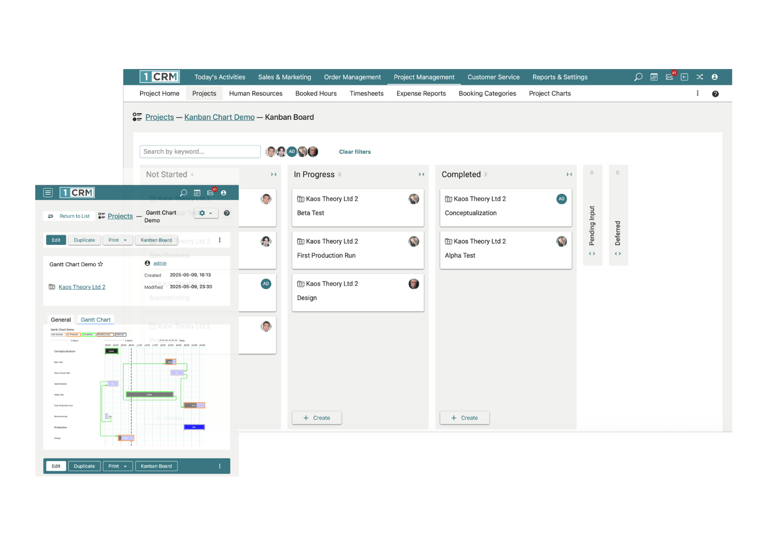 Start your day with 1CRM! Manage your projects efficiently with Kanban and Gantt Charting.